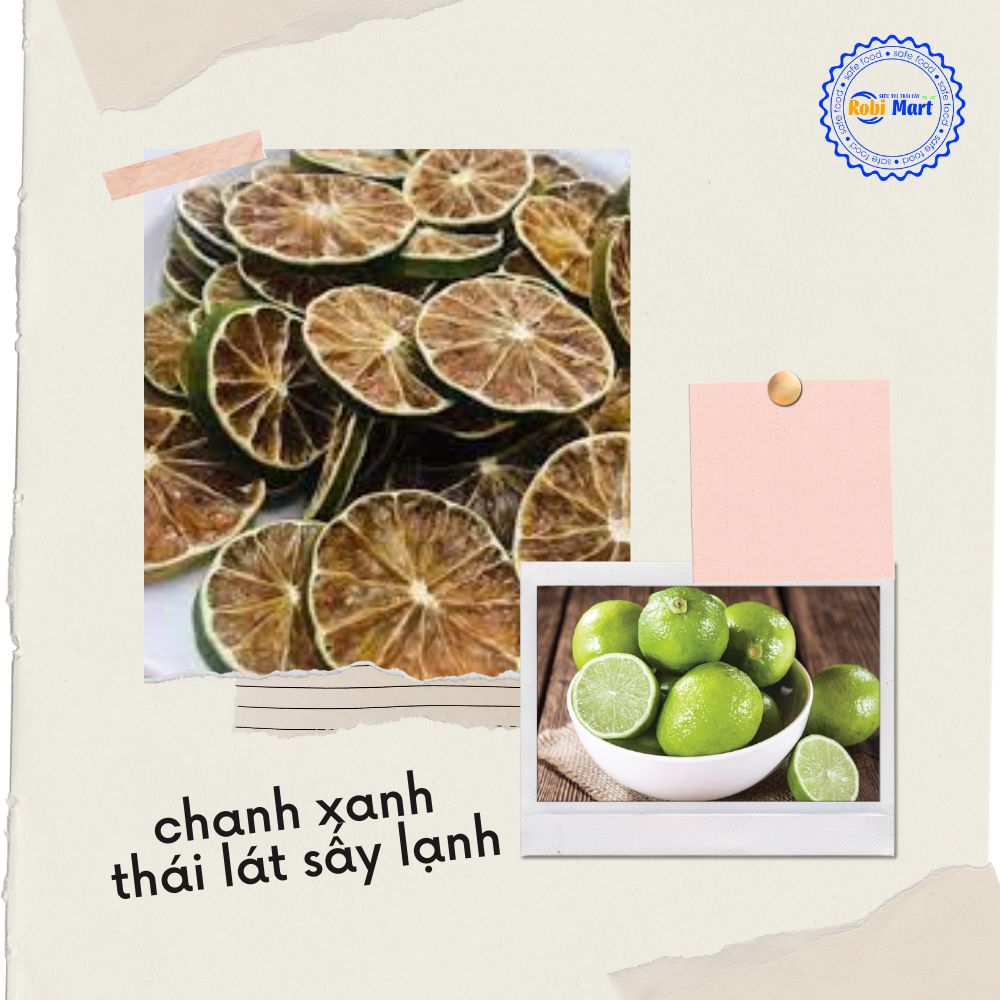 🌴 THÀNH PHẦN: 100% chanh xanh thái lát sấy lạnh theo công nghệ mới, giữ màu, mùi vị và hàm lượng chất dinh dưỡng cho thực phẩm.