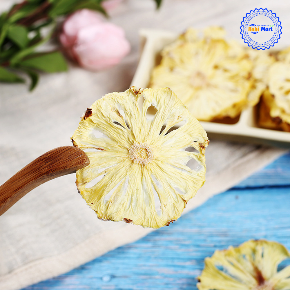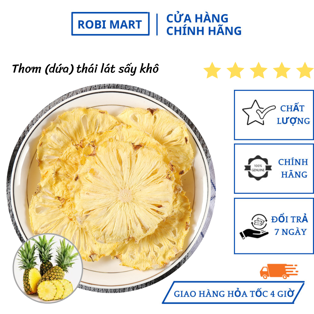 🍀CAM KẾT VỀ SẢN PHẨM: Thơm (dứa) được thái lát sấy khô sạch, không chất bảo quản, không phụ gia, đảm bảo an toàn vệ sinh thực phẩm.