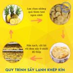 ĐẶC ĐIỂM SẢN PHẨM: Thơm (dứa) được thái lát mỏng và được sấy lạnh, kích thước đều, giữ nguyên vị.